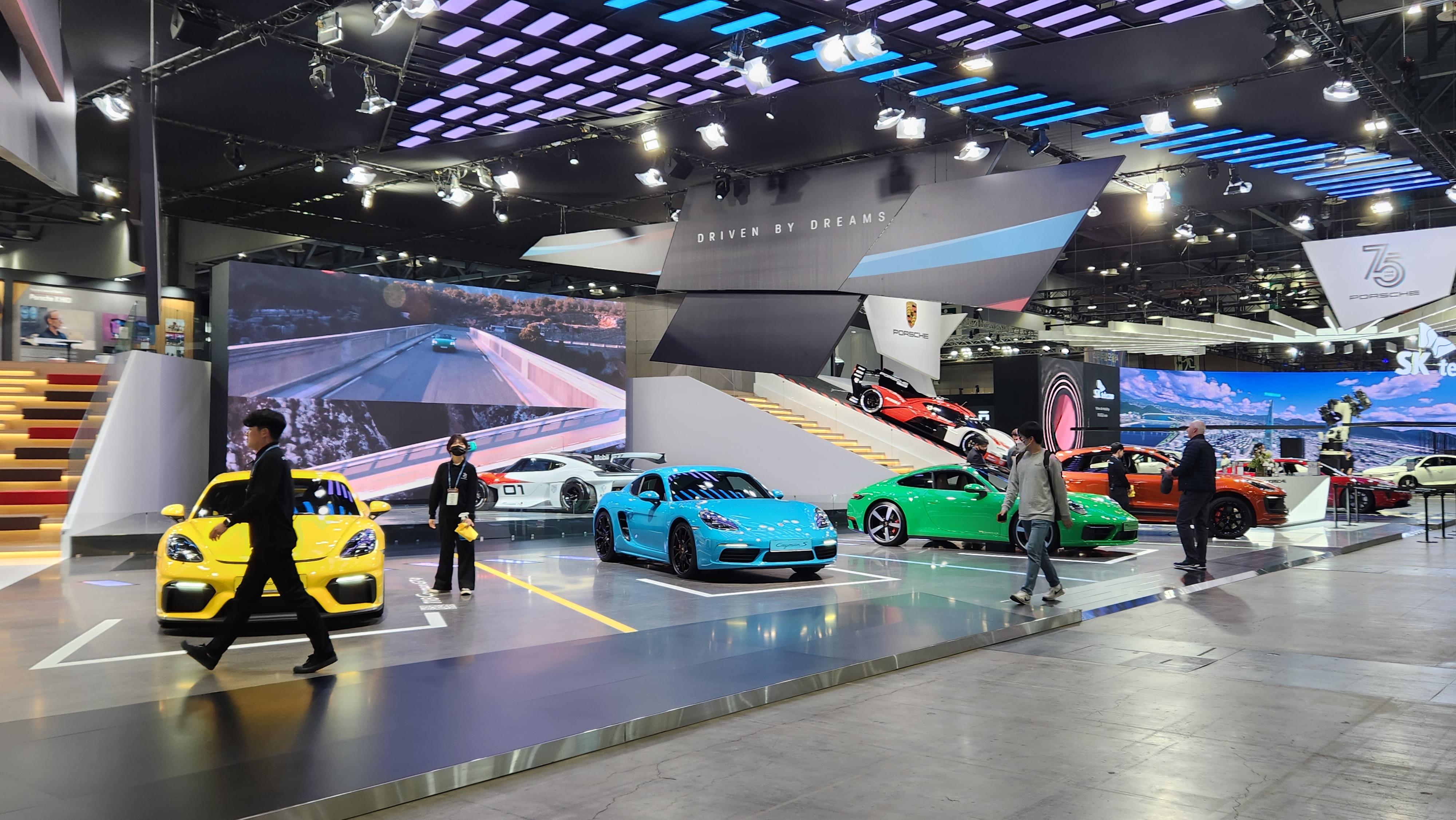 디자인적으로 눈 샤워를 한 부스는 포르쉐