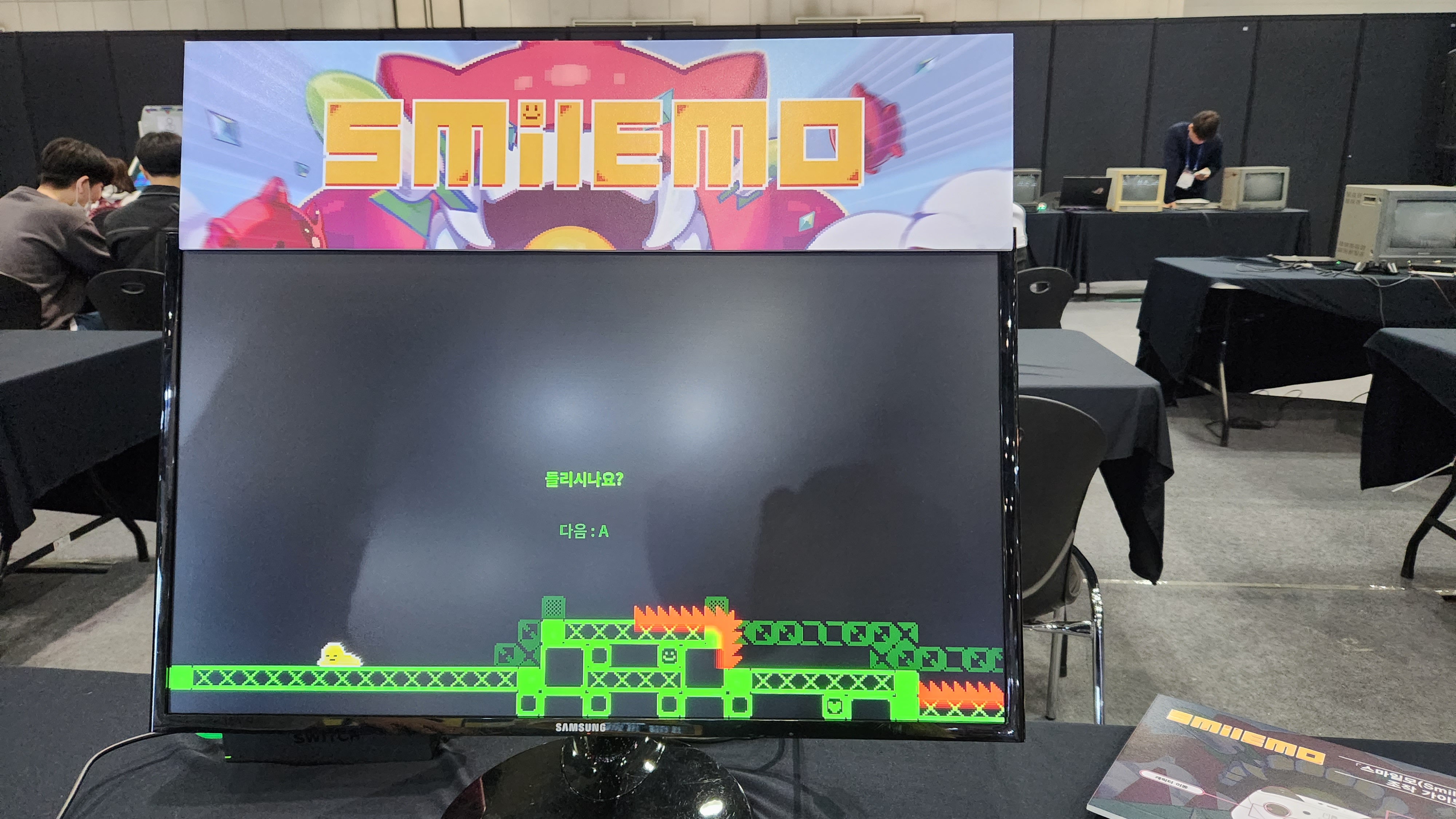 직접 해볼 수 있습니다. 모니터도 작습니다. 2000년 이후에 태어난 분들은 저 작은 네모상자같은 게임기를 본적이 있을런지 모르겠습니다. 갤럭시 같은 게임은 현대적 모니터에서 재생되어 진행되었습니다. 버블버블도 보였는데, 사진을 찍지는 않았습니다.
