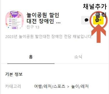 카카오톡 --> [친구] 탭 --> 놀이공원 할인대전 검색 --> 놀이공원 할인대전 장애인 전용 채널 선택 및 추가
