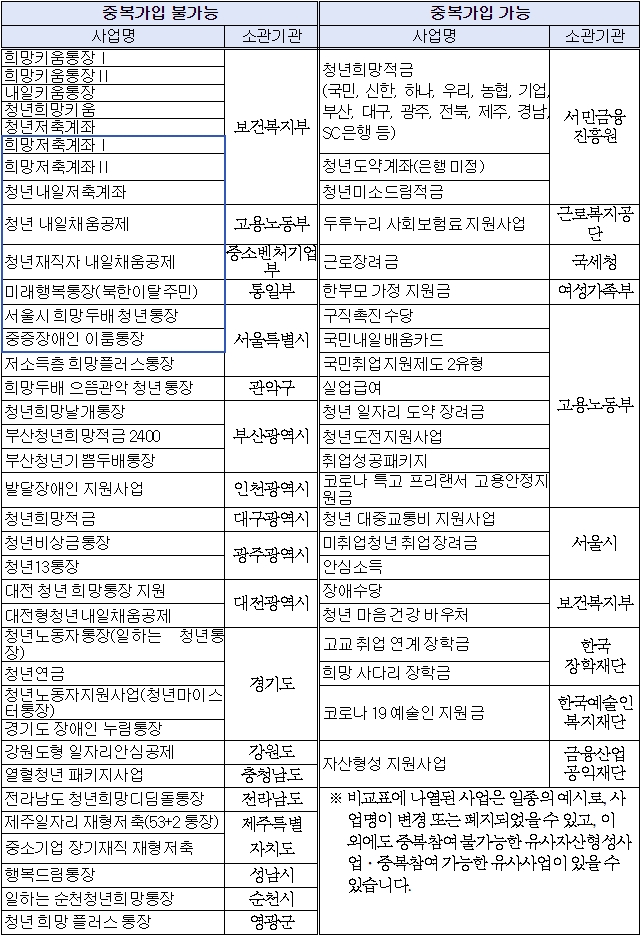 2023 희망두배청년통장 중복참여 불가능 vs 가능 통장 계좌 비교표