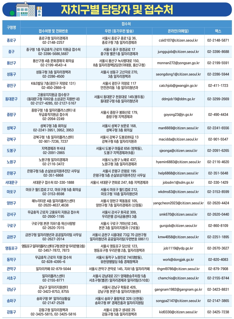 - 문의 : 서울시 일자리정책과 (☎02-120, ☎02-2133-9341, 5395)