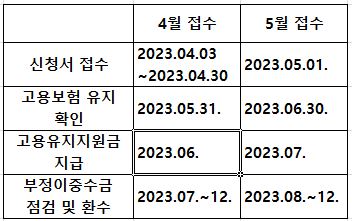 고용보험 유지조건 : 4월 신청자는 5월 31일까지, 5월 신청자는 6월 30일까지 유지하여야 합니다.