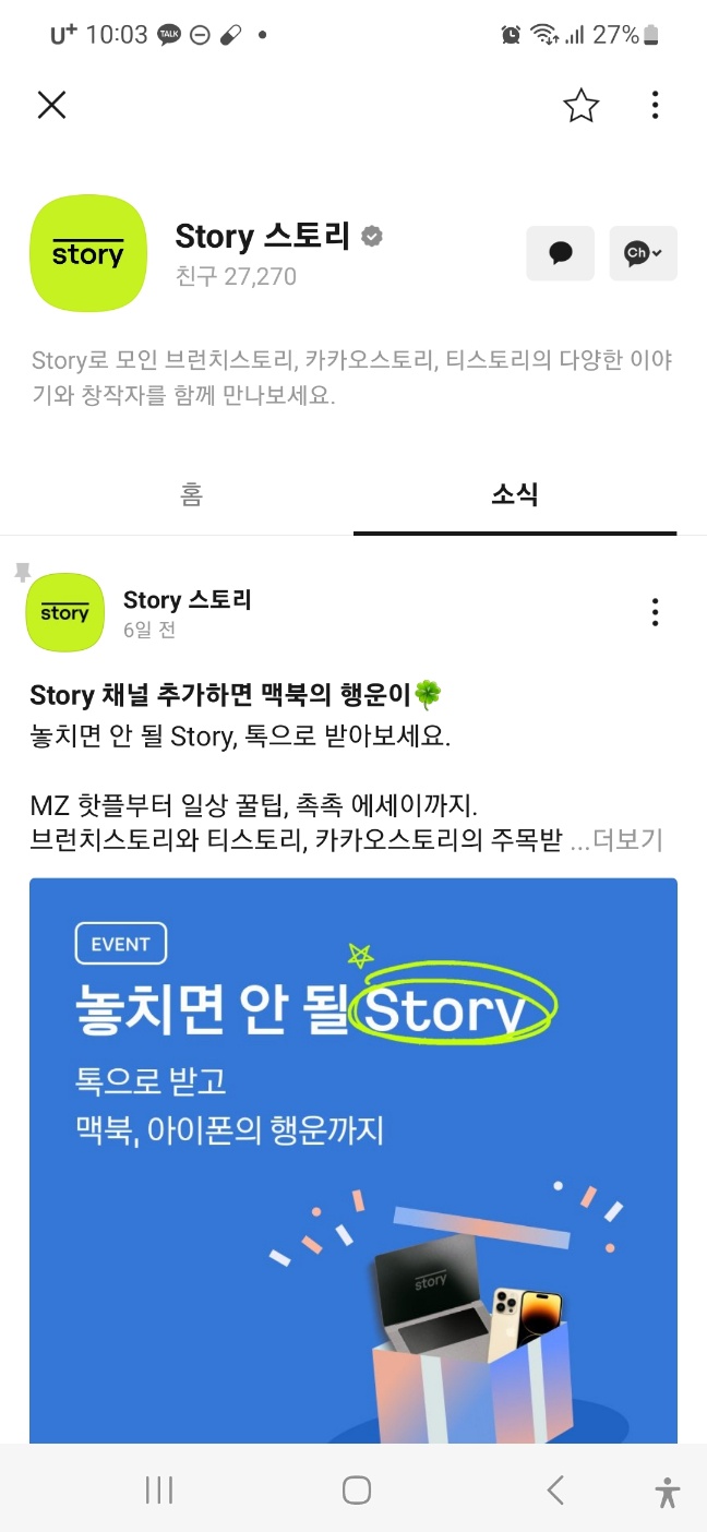 카카오톡에 story 채널을 추가해 보세요.