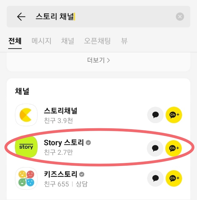 1. 카카오톡 검색에서 "스토리 채널"을 검색하세요