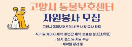 고양시 동물보호센터 유기견 유기묘 보호소 자원 봉사 신청하세요. 동물찾기네트워크